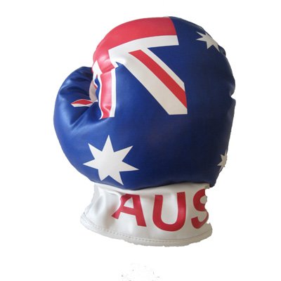 New design Lawrence “Larry” Foley was a pioneer in Australian boxing and opened a school of boxing in Sydney in 1877. This head cover is a tribute to him and Australia’s heritage - if Larry was on the course today he would have this in his bag. Honestly everywhere we go people tell us how great these are. The AUS boxing glove head cover is made of a soft durable material that closely resembles genuine leather and has the Australian flag printed across the entire front with letters AUS on the cuff. All materials are non toxic and flame retardant. Double stitching with top quality thread ensures product strength for a long life. The glove lining is produced from a polyester material very similar to sheepskin and provides excellent head protection. Durable elastic inside the cuff secures to a tight fit over the neck so that the cover will not fall off in the fairway or end up in the garage. The AUS boxing glove head cover fits all clubs from the big 460cc driver down to the #3 fairway woods. This product is surface washable with a damp cloth.